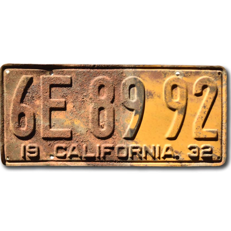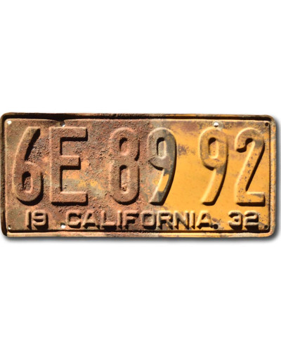 Amerikai rendszám California 1932 Yellow 6E 8992
