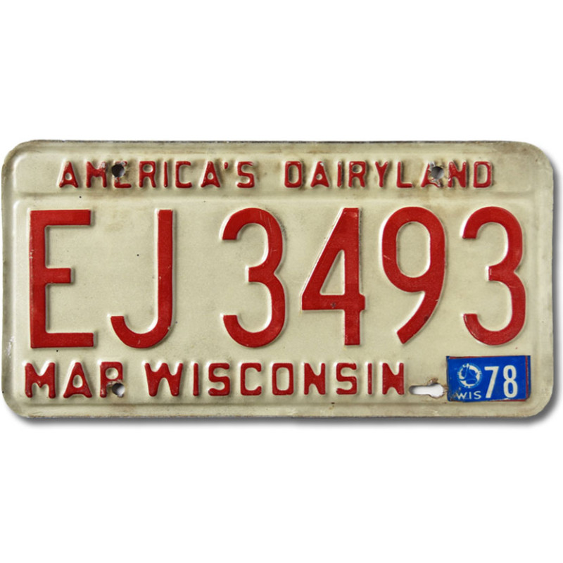 Amerikai rendszám Wisconsin 1978 Dairyland EJ 3493